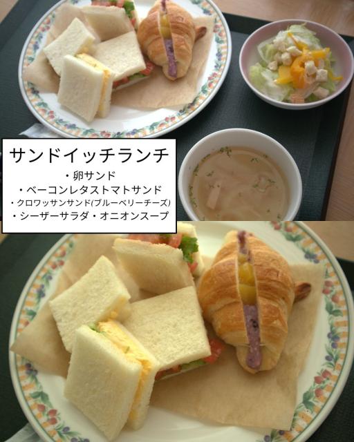 秋のやわらかな日差しが心地よいこの日、昼食には卵サンド、ベーコンレタストマトサンドに加え、ブルーベリーチーズをはさんだクロワッサンサンドの盛り合わせ、シーザーサラダと温かなオニオンスープを添えた彩り豊かな「サンドイッチランチ」をご用意いたしました。