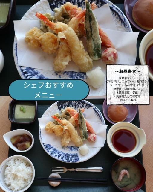 8月13日(水)レストランイベントでシェフおすすめメニューをご提供しました。暑い夏を元気に乗り切っていただけるよう、疲労回復効果のある夏野菜の天ぷらをご用意しました。