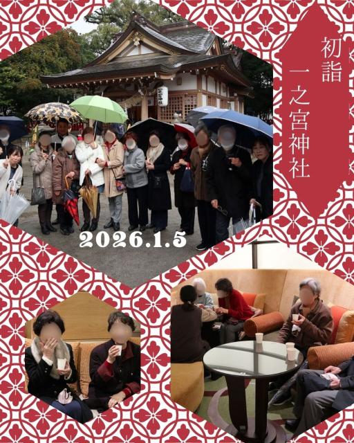 グランガーデン鹿児島から一番近い「一之宮神社」へ、初詣に行ってきました。 新しい一年の始まりに、皆さまでゆっくりと参拝。 穏やかな気持ちで、年の初めを迎えることができました。 当日は小雨が降るなかで無理のない範囲でご参加いただき、安全に配慮しながら外出を実施しました。 ご帰館後には、温かい甘酒とお茶をご用意。「体が温まるね」「ほっとするね」と、和やかなひとときをお過ごしいただきました。